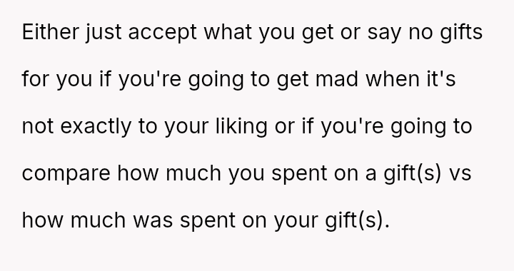 Considering the discrepancy between the effort shown in different gifts, is the appropriate reaction to reject all gifts and demand an apology based on perceived effort, or should the focus remain on the stated monetary value and the continuation of the relationship despite mismatched expectations for thoughtfulness?
