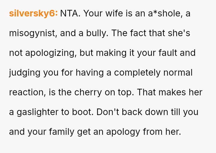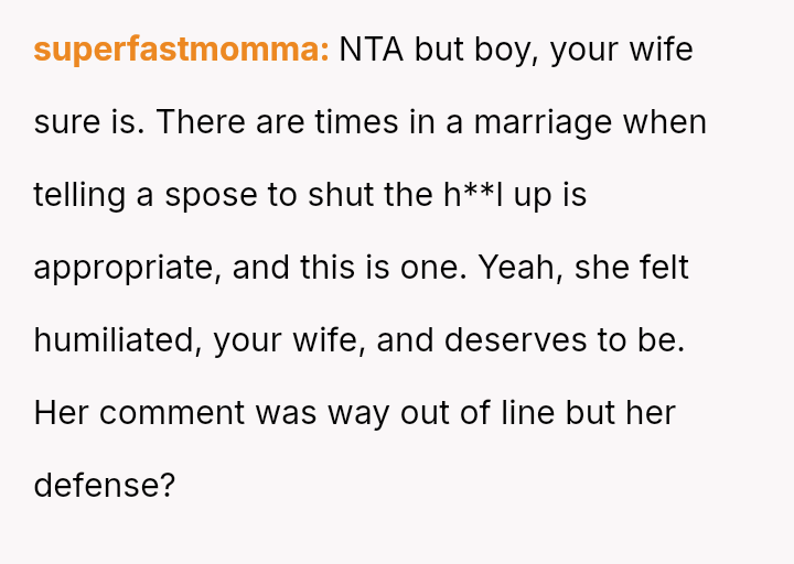 The central conflict arises because the wife believes she was offering unso***ited, though harsh, advice and feels disrespected by the OP's direct confrontation in front of family, while the OP felt compelled to defend his sister against a hurtful and inappropriate comment.