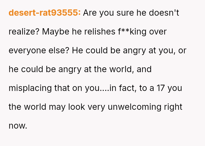 Her action was a direct response to this perceived weaponized incompetence, creating a situation where the son was forced to confront the direct consequences of his poor performance.