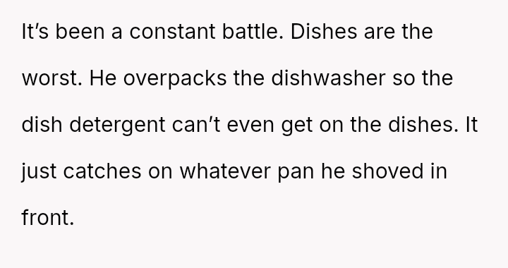The dishwasher full of grime is more than just a ch**e undone; it is a breaking point, a moment where patience frays and the hope for understanding feels painfully out of reach.