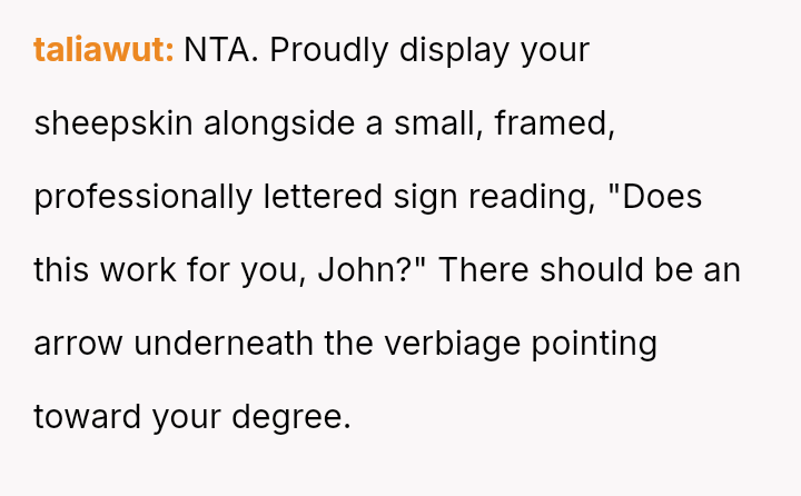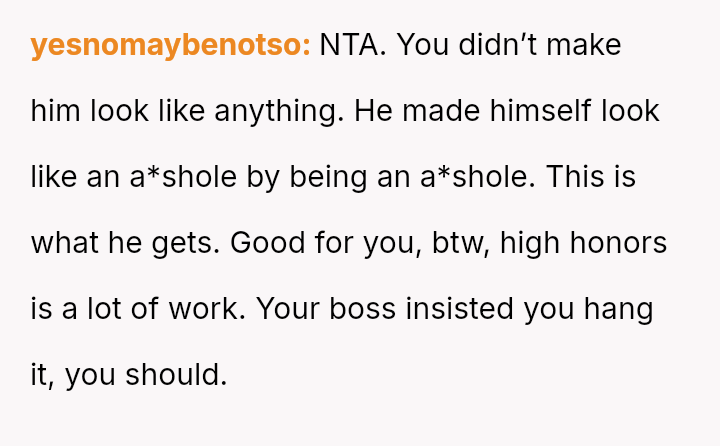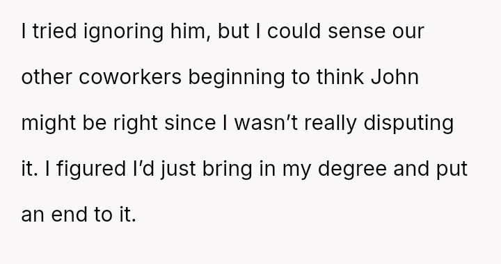 Was the OP justified in presenting his degree to definitively stop the ongoing, baseless accusations, even though it resulted in publicly diminishing a colleague, or should he have sought a less confrontational m**hod to a*sert his qualifications?