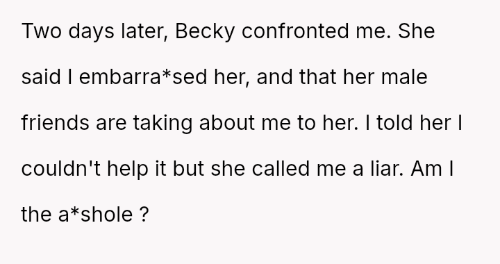 Becky’s confrontation, fueled by whispers and embarra*sment, left the mother questioning not just her actions, but the love and understanding she once took for granted.
