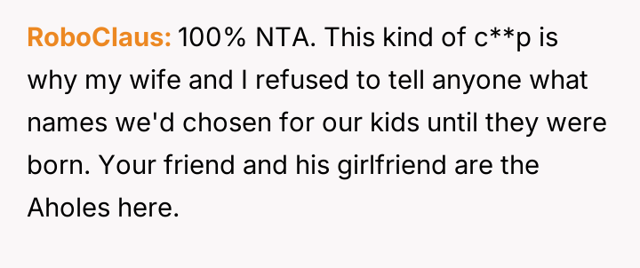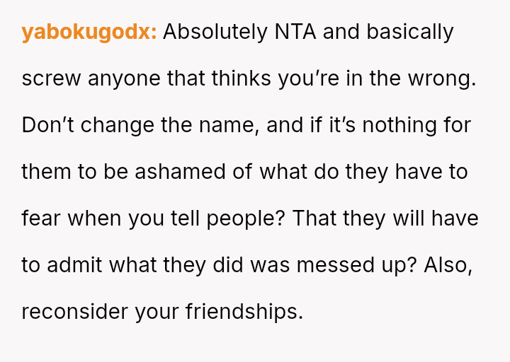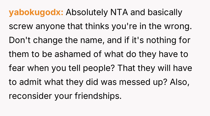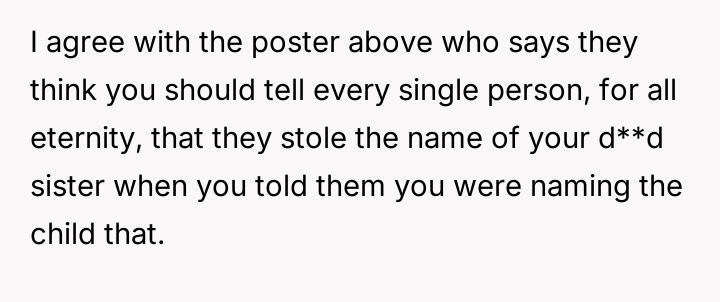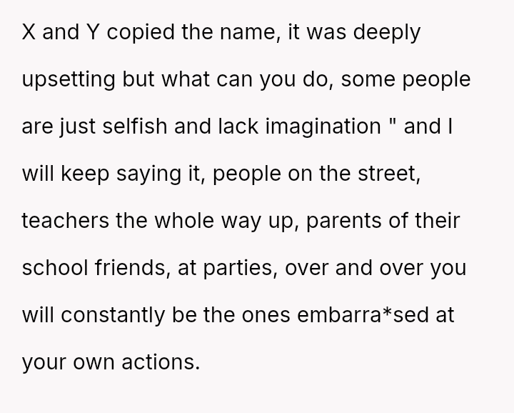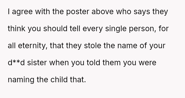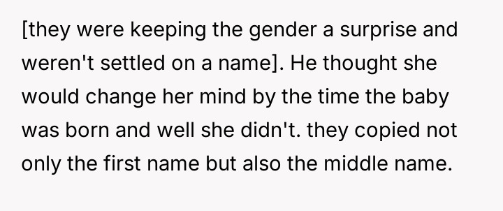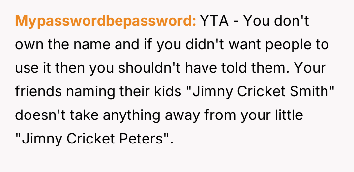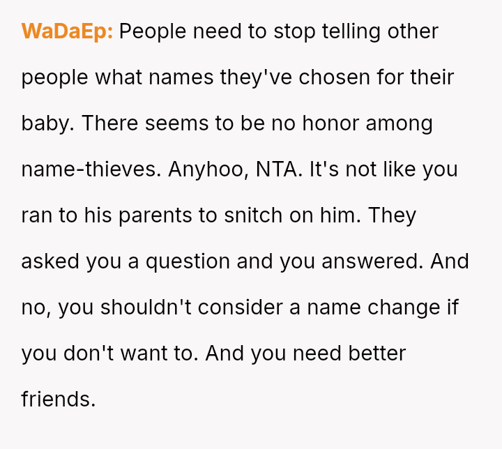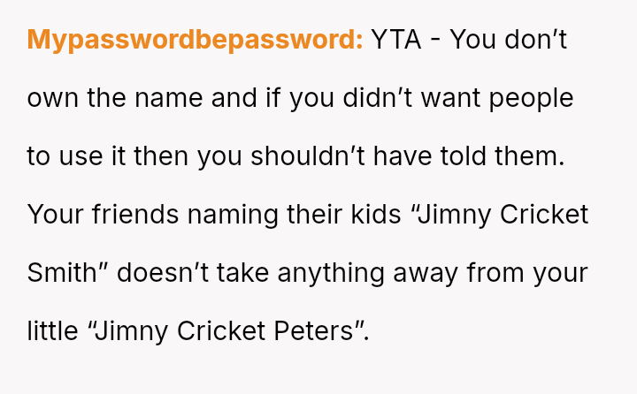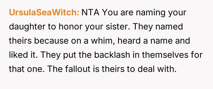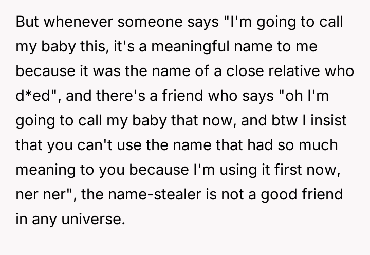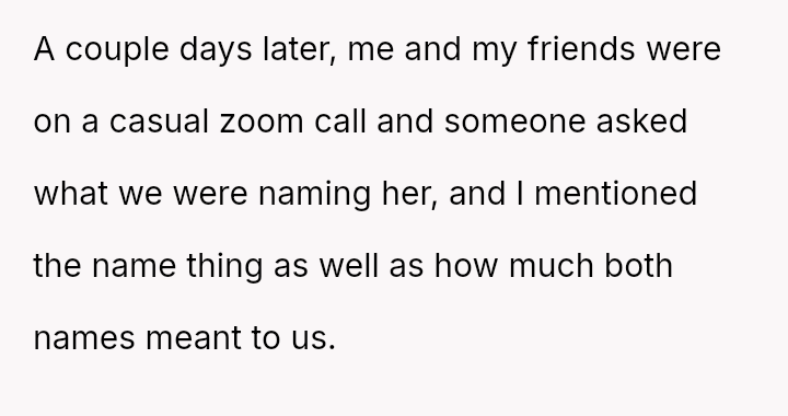 Given that the OP's naming choice is tied to a significant emotional loss and the friend's partner adopted the name after hearing the OP's intention, is the OP an inconsiderate person for involving the friend's parents and refusing to change the name, or does the friend and his partner bear responsibility for knowingly copying a name with es**blished familial significance?