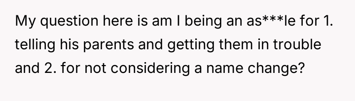 AITA for not wanting to change my daughters name and snitching on him to his parents?