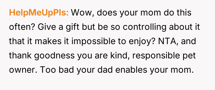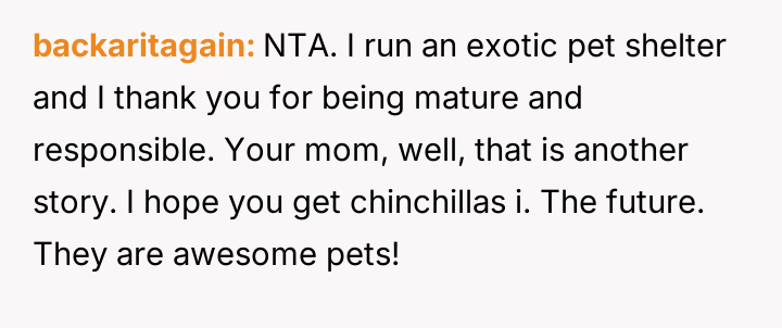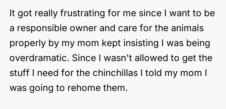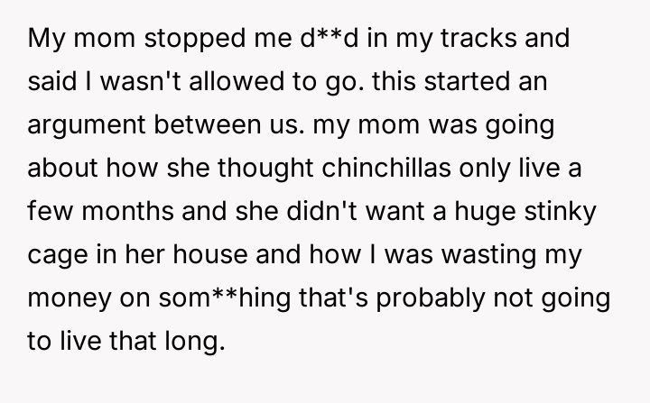 But hope quickly turned to heartbreak when her mother forbade her from buying a proper cage and supplies, halting her plans cold.