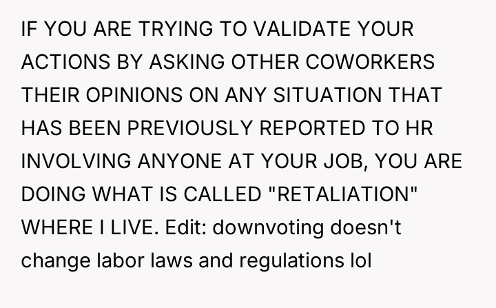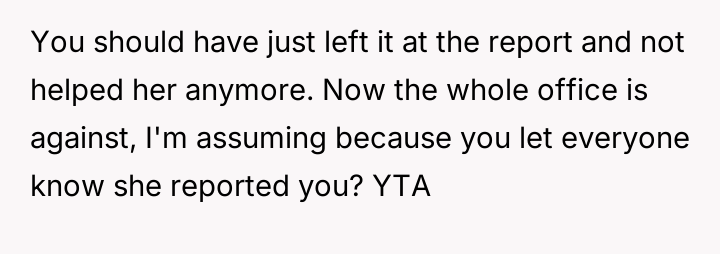 AITA For ignoring the co worker that reported me to HR which is leading to her likely being fired