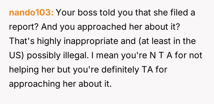 The original poster (OP) is currently in a difficult position, balancing the need to protect their career from potential false accusations and the feeling of guilt for withholding necessary professional help from a struggling coworker.