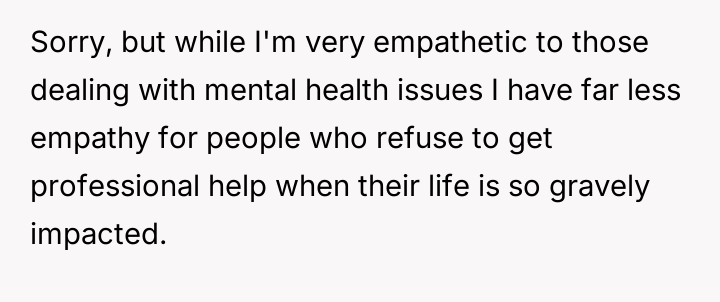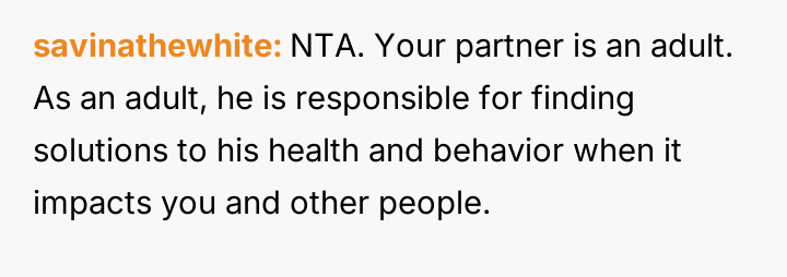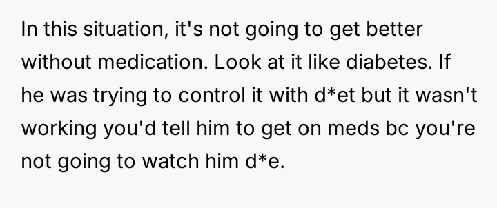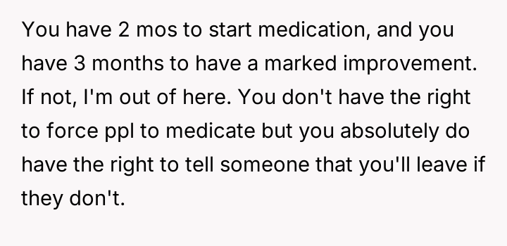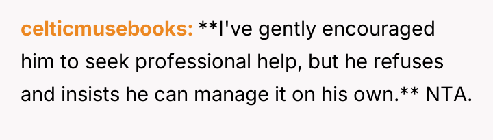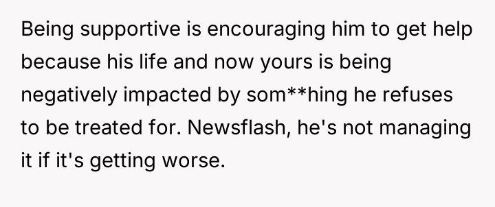 Despite the poster gently suggesting professional treatment, the partner refuses help, insisting they can handle the condition alone.