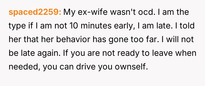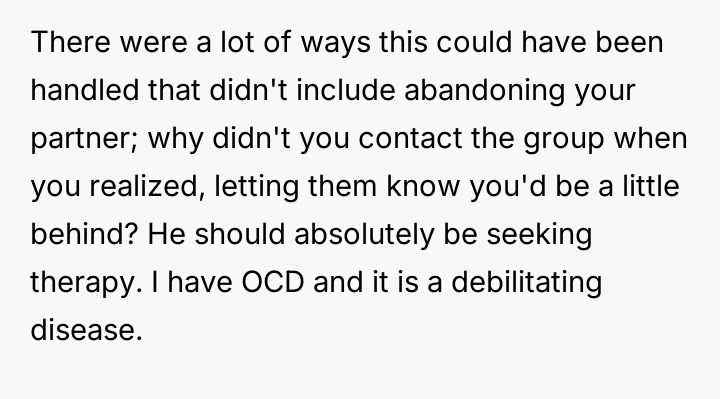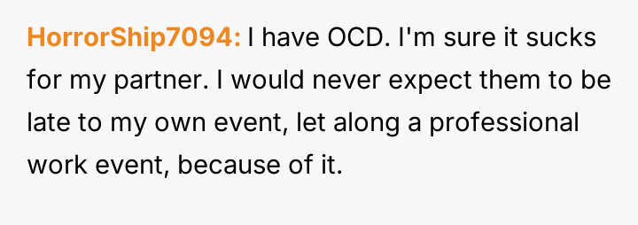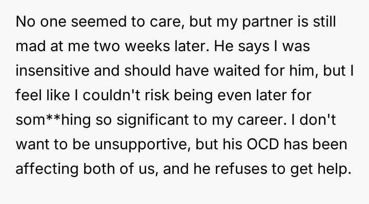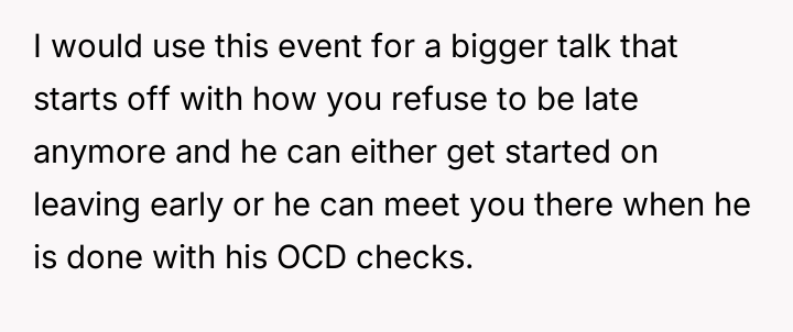 AITA for Leaving My Partner at Home Because His OCD Made Me Late to a Dinner Party at a Restaurant?