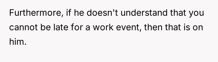This situation came to a head when they were invited to an important dinner party hosted by the poster's boss, leading the poster to question whether their final action regarding the timing was justified.