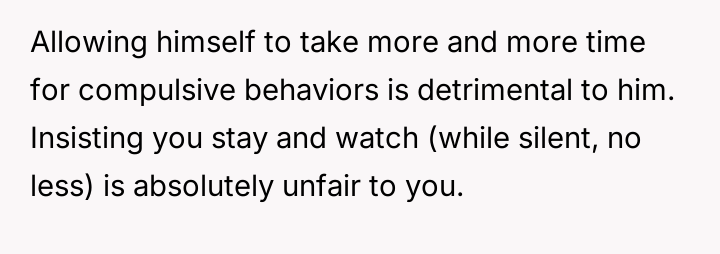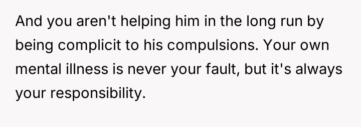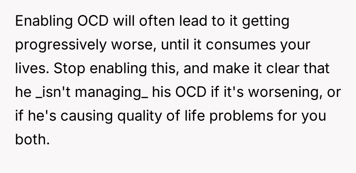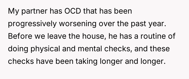 The original poster's partner has Obsessive-Compulsive Disorder (OCD) which has become more severe over the last year.