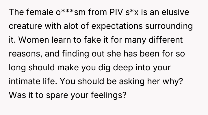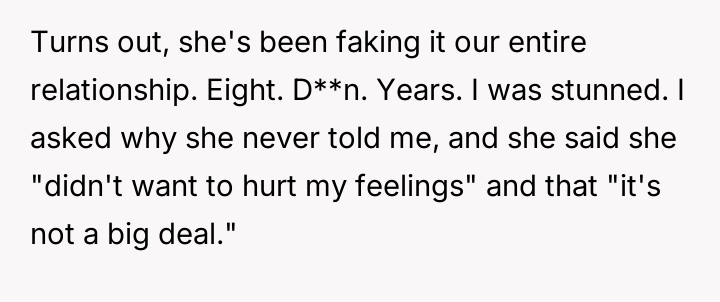 AITA for thinking I was great in bed until my wife admitted she’s been faking it?