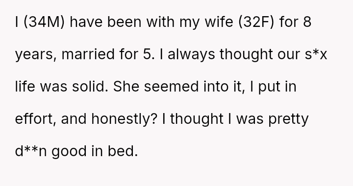 He thought their bond was unbreakable, their intimacy a testament to their love. For eight years, he believed he had been fulfilling his wife in ways that made their connection electric and pa*sionate.
