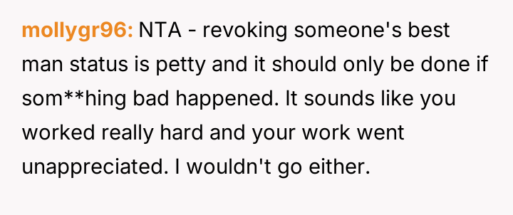 AITA for not going to wedding after agreeing to be best man?