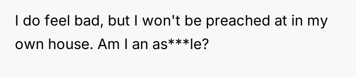 The OP stood firm on the principle of personal choice and autonomy within their own home, leading to a significant emotional backlash from both April and their son.