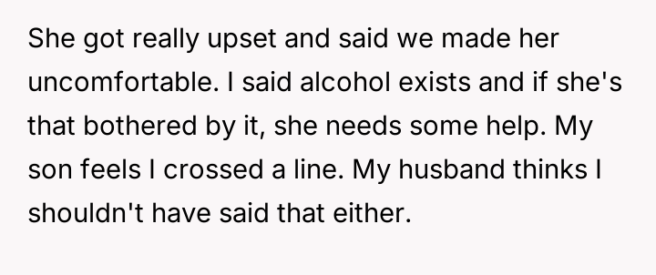 AITA for making drinks on my daughter’s birthday even though it made my son’s girlfriend uncomfortable?