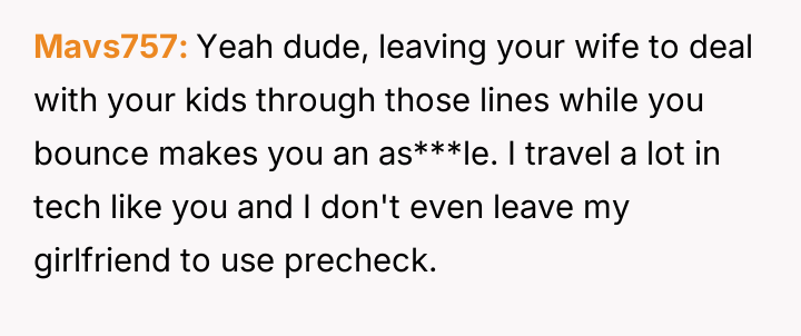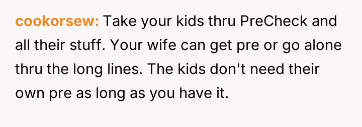AITAH if I use TSA PreCheck while my wife and kids don't when we travel for a wedding in 2 months