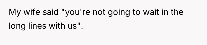 Faced with the choice to skip the long lines or stand alongside his wife and children, he wrestled with a deeper question: does taking the easier path make him selfish?