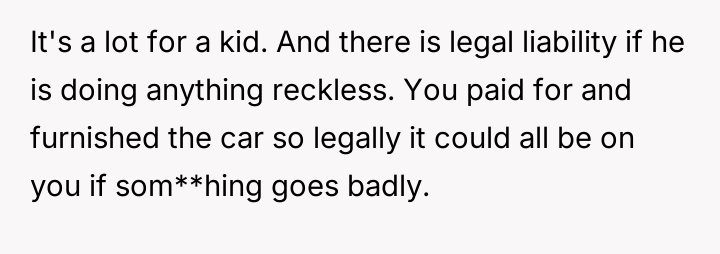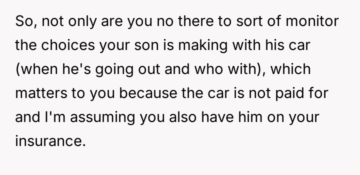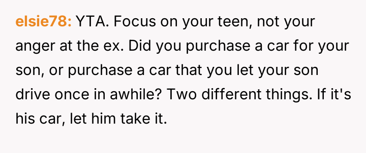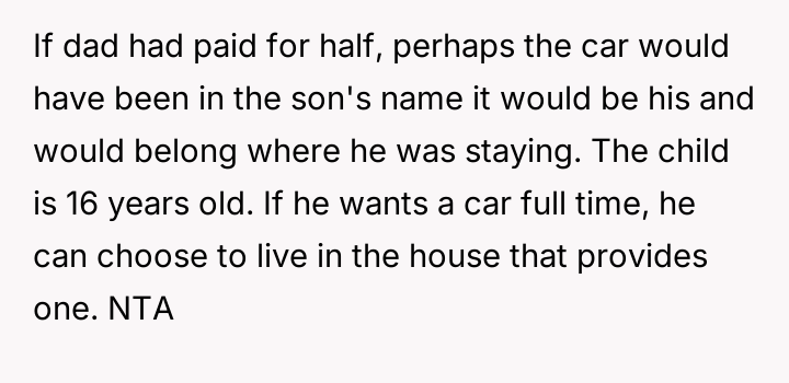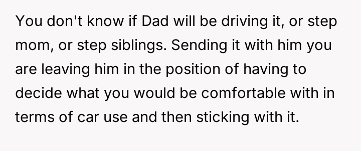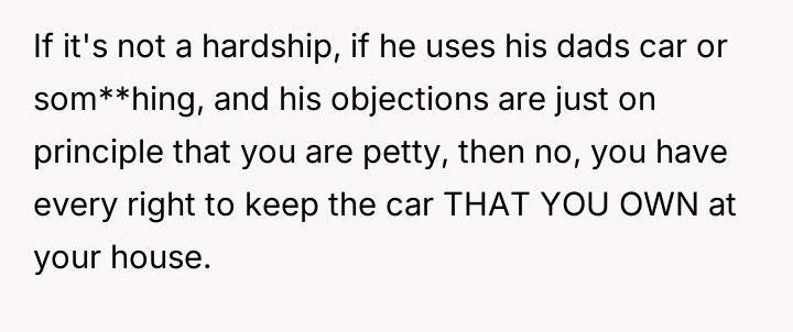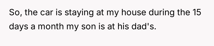AITA for not letting my teenager take the car I purchased to the other house during dad’s custody time?