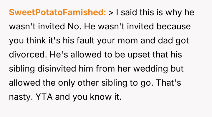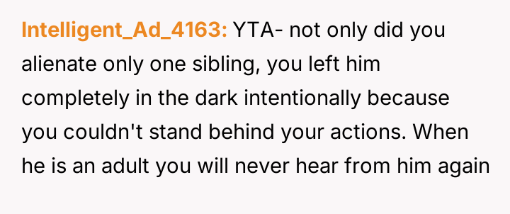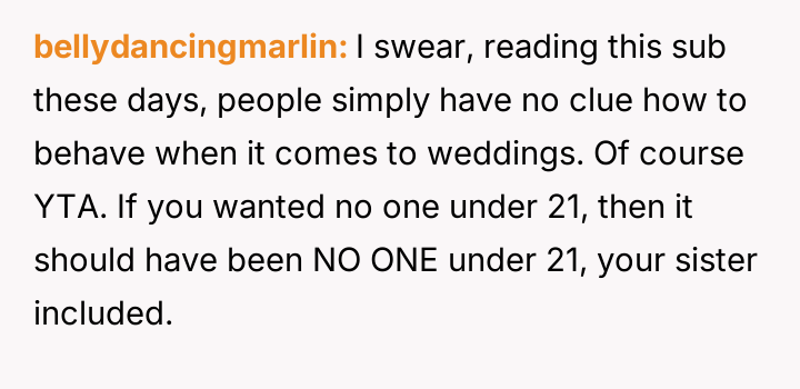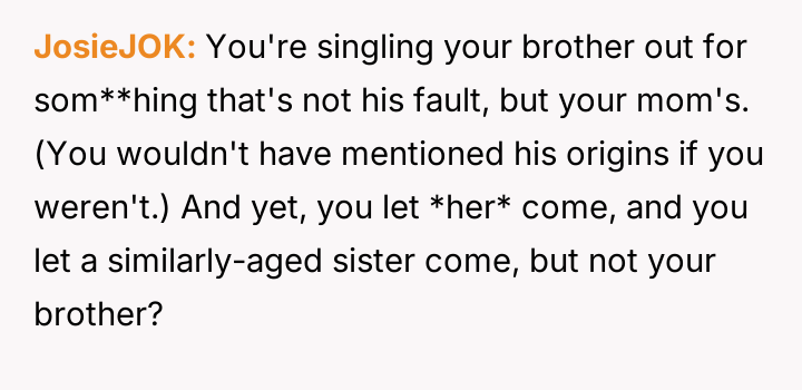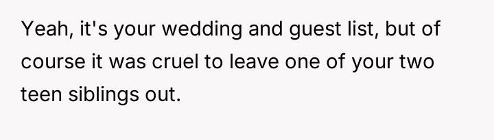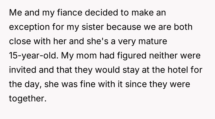 Given the intentional exclusion of one minor sibling while making an exception for the other, was the OP justified in prioritizing their event's intended atmosphere over their mother's desire for family unity, or did this selective invitation cause unnecessary and predictable family fallout?