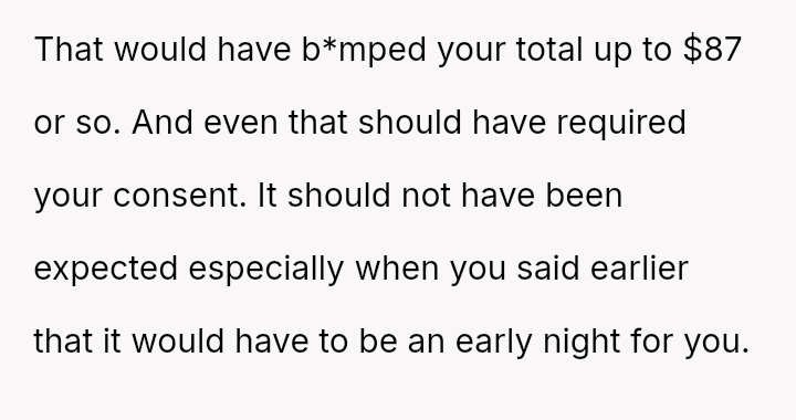 Was the OP correct in prioritizing their pre-es**blished personal spending limit and leaving early to avoid subsidizing significant group overspending, or did this action v***ate the shared social contract of the outing, causing unnecessary financial strain and resentment among the friends who remained to cover the inflated total?