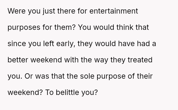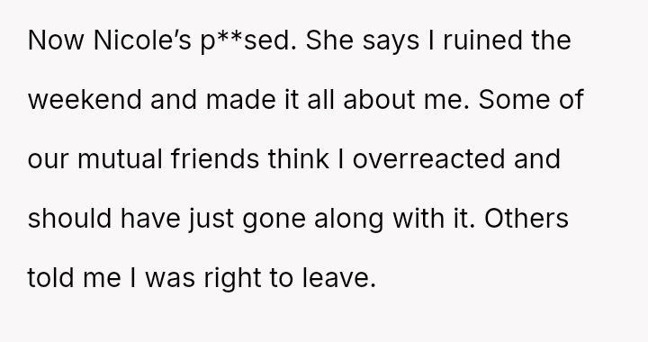Given the clear pattern of disrespect shown during the trip, was the OP justified in abruptly leaving the bachelorette party to protect their own well-being, or did this action unfairly prioritize personal feelings over maintaining the friendship and respecting the bride's major life event?