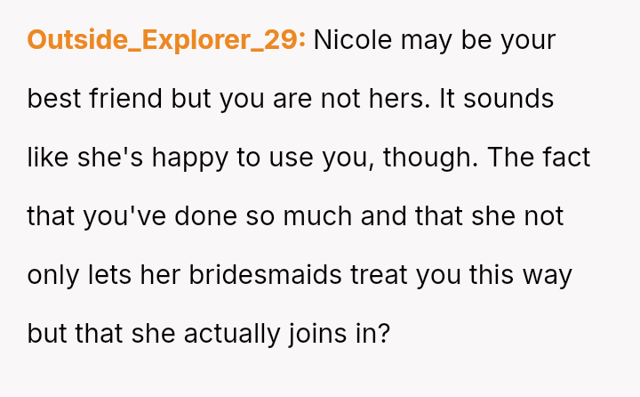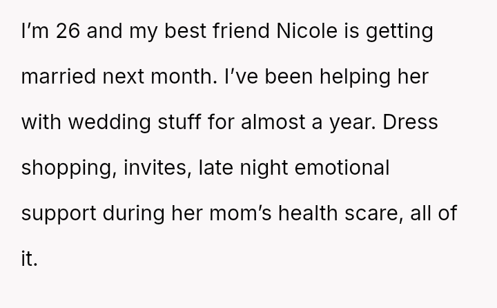 She had stood by Nicole through every high and low, a silent pillar of unwavering support—yet when the moment came to claim her place by her best friend’s side, she found herself sidelined, reduced to a joke among bridesmaids.