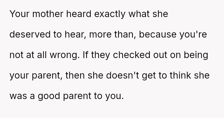 Should the OP prioritize repairing the relationship with her mother now, or maintain the boundary she has set for her own future development?