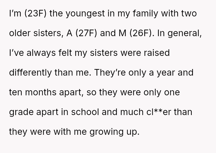 From the very beginning, she felt like an outsider in her own family, overshadowed by the bond her two older sisters shared.