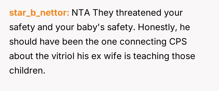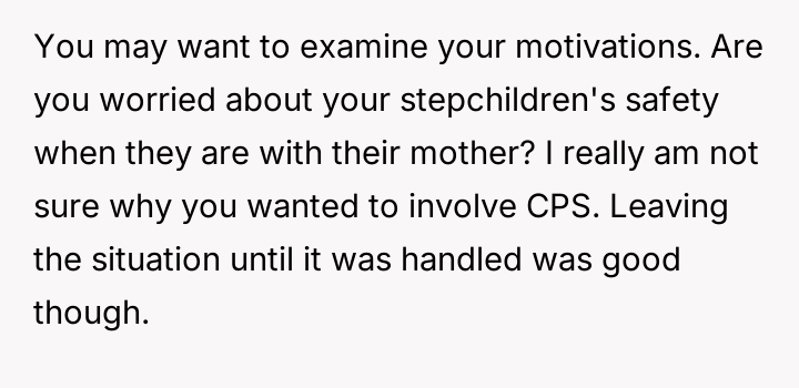 AITA for reporting threats made by my husband's kids and their mom to CPS and then leaving because I'm pr****nt?