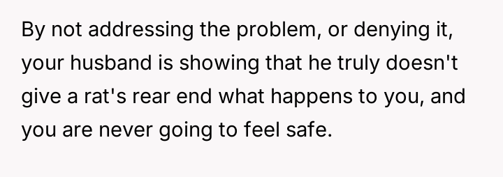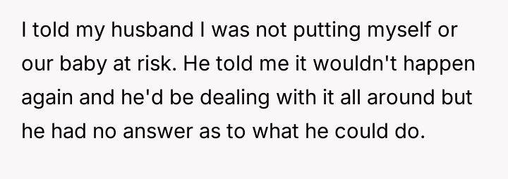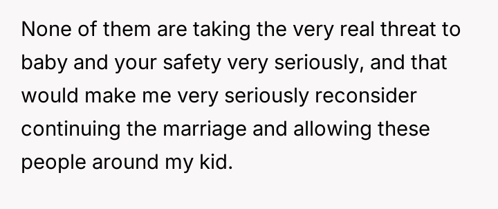 Is the user justified in prioritizing her safety and the baby's safety above preserving the immediate family structure under these extreme circumstances?