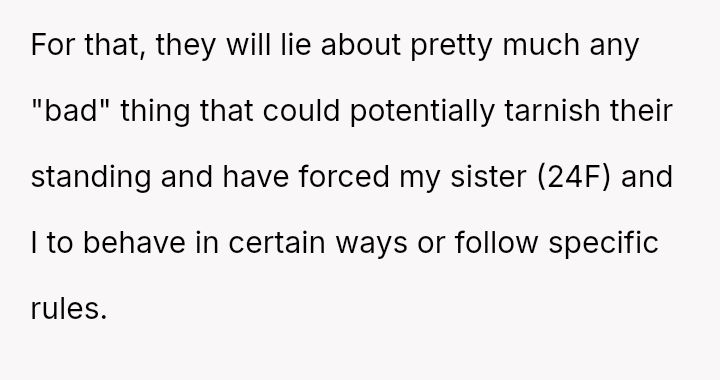 The original poster (OP) has reached a breaking point regarding his parents' deep-seated need to control their public image through fabrication and social manipulation.
