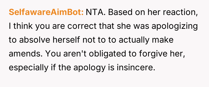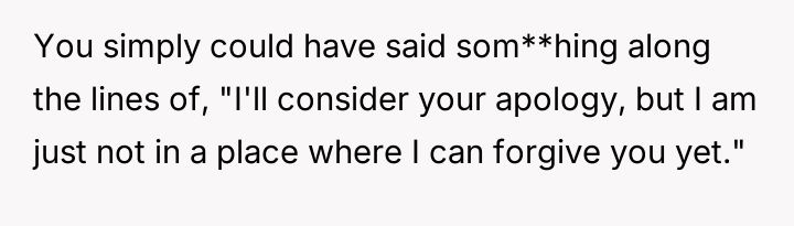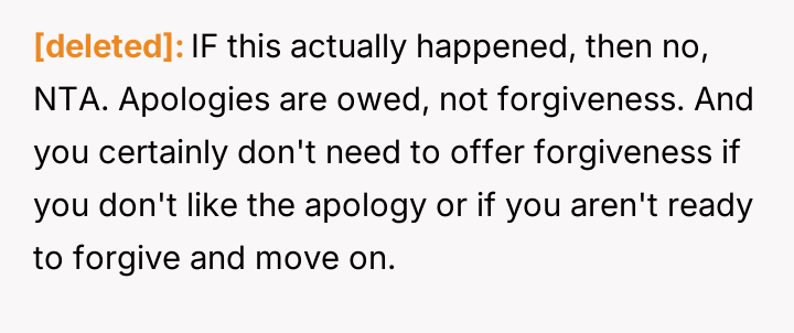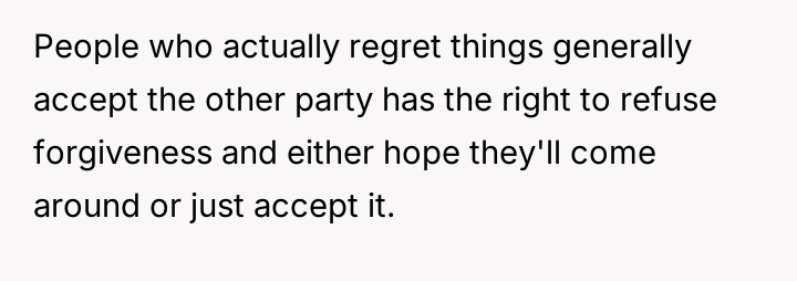 This created a direct conflict between the poster's need for authentic closure and the expectation, implied by the apology itself, that forgiveness should automatically follow.