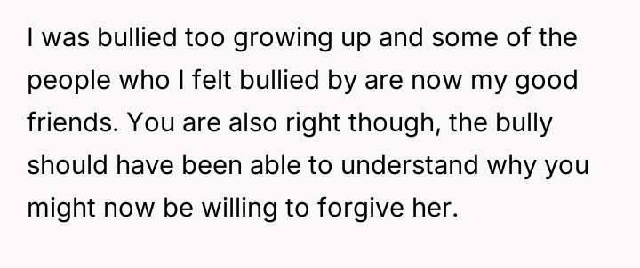 AITA for telling my old bully that she's clearly only apologising to make herself feel better?