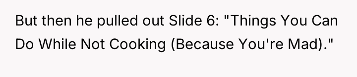 Update: AITA for refusing to cook after my BF tried to “critique” my cooking with a literal PowerPoint presentation?