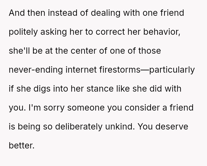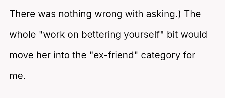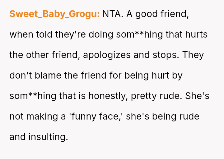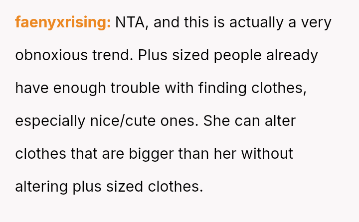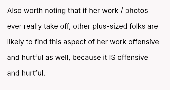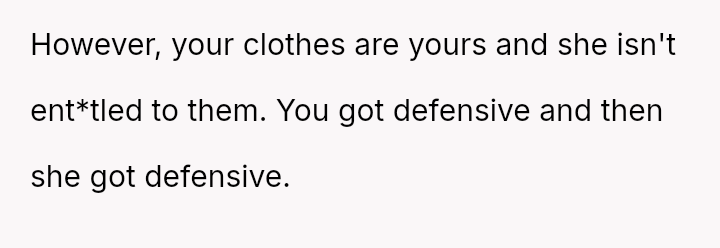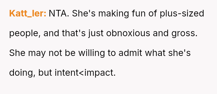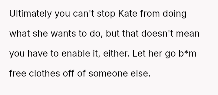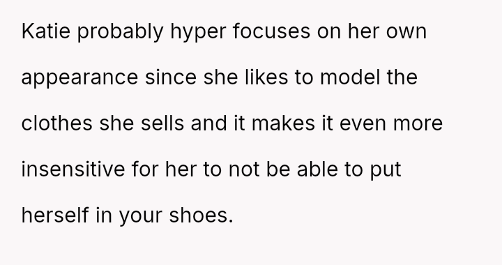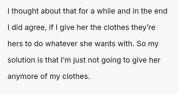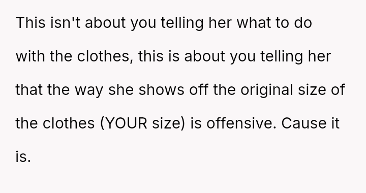 The original poster (OP) initially agreed to give her friend Katie access to her unwanted clothing for creative projects, but this arrangement soured when Katie used highly exaggerated, mocking facial expressions in 'before' photos that seemed to target the OP's plus-sized body.