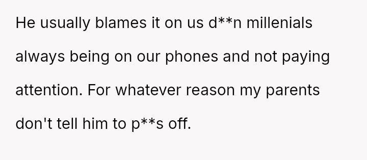 His constant shifting of orders, blaming the “d**n millennials” for inattentiveness, left the younger generation feeling invisible and dismissed, their patience worn thin by a cycle of disrespect no one dared to confront.