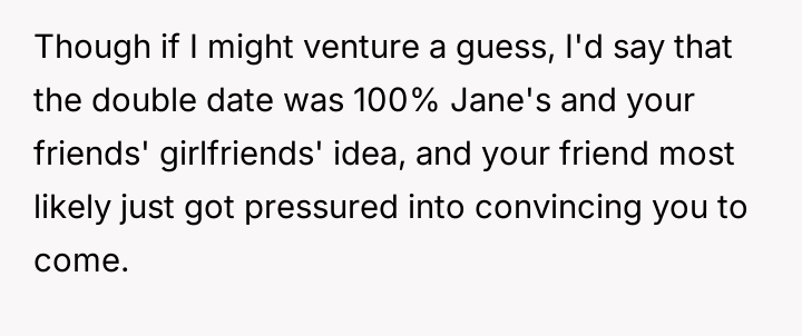 AITA For walking out on a double date my friend set up with him, his girlfriend and a girl I had already rejected before