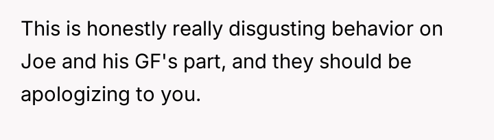 The OP felt disrespected by Joe's deliberate deception, leading to an abrupt exit from the planned social gathering.