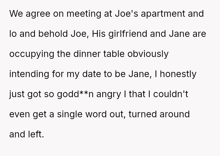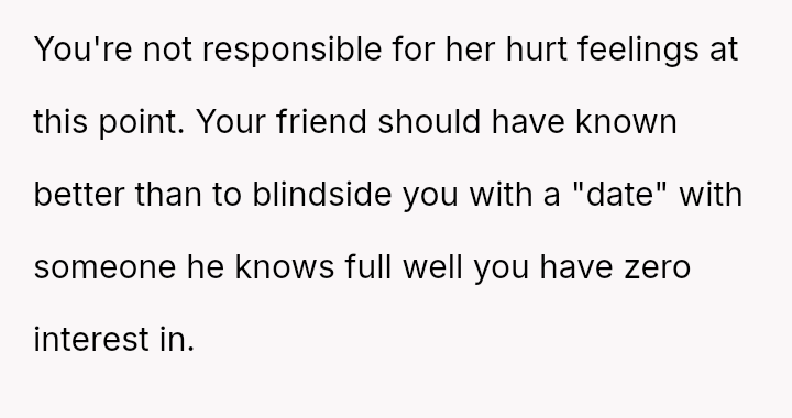 ‘AITA For walking out on a double date my friend set up with him, his girlfriend and a girl I had already rejected before’