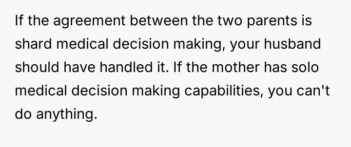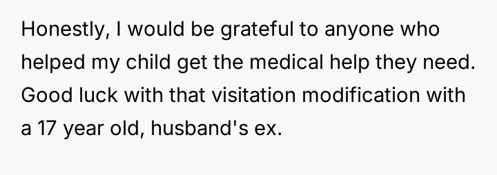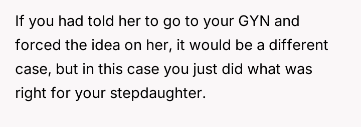 However, this act of support led to intense conflict with the stepdaughter's mother, who perceived the OP's involvement in the 17-year-old's medical decisions as an unacceptable overstep of boundaries.