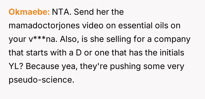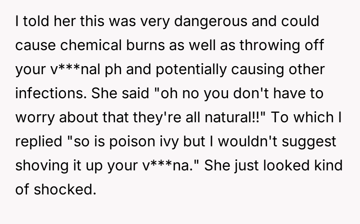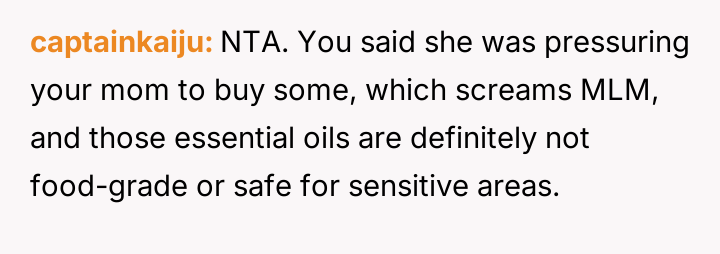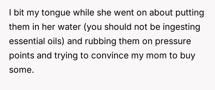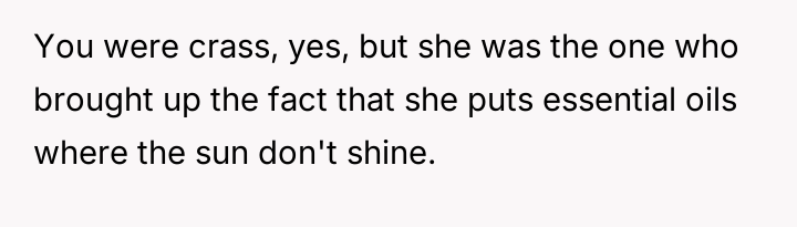 AITA for bluntly telling a woman it’s dangerous to put essential oils in sensitive areas?