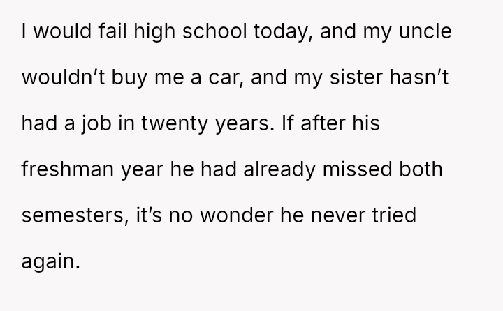 An aging uncle, driven by love and a heartfelt promise, set a challenge for his young niece and nephew: keep your grades up, and a car of your dreams will be yours.