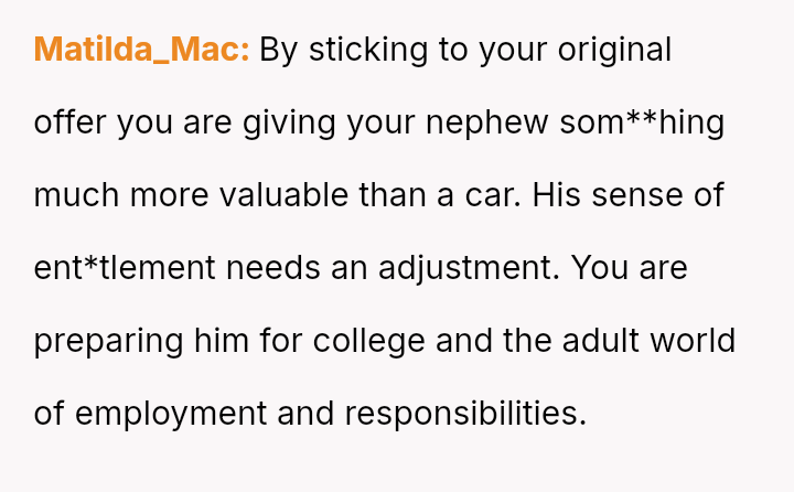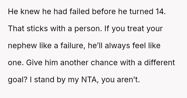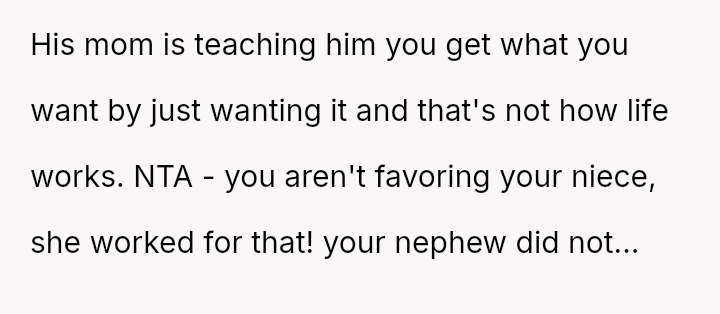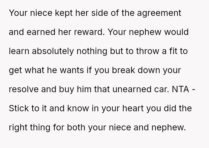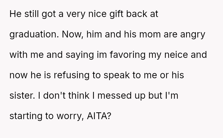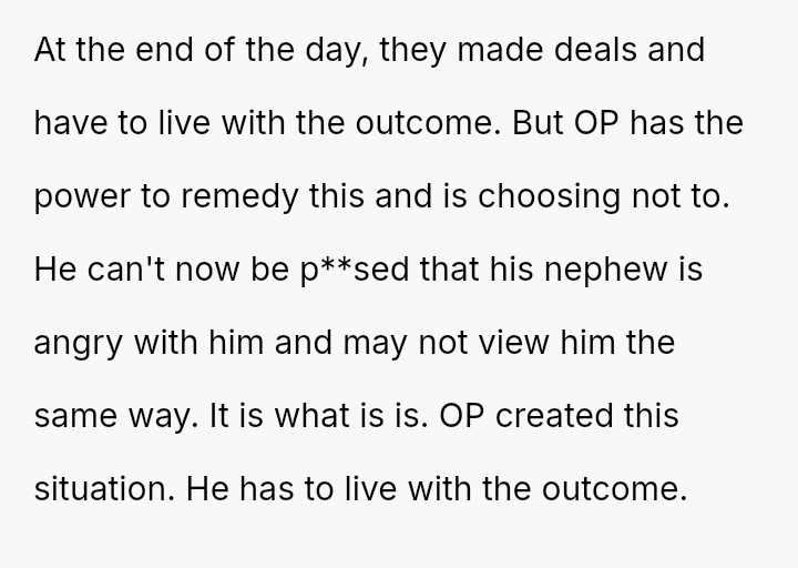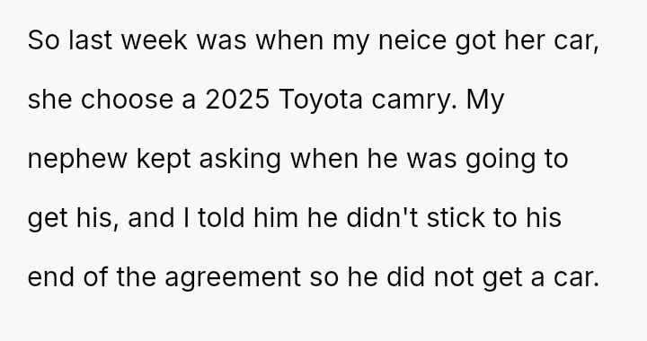 The central conflict arises because the nephew and his mother feel ent*tled to the reward regardless of the unmet conditions, leading to accusations of favoritism and a complete breakdown in communication with the nephew.