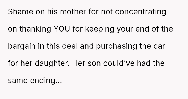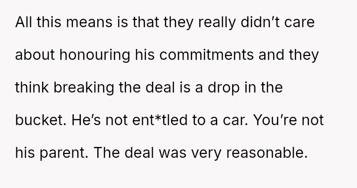 Should an agreement, es**blished in good faith with clear terms, be upheld strictly when one party fails to meet the agreed-upon performance benchmarks, or does the familial relationship and the perceived unfairness of the outcome outweigh the contractual obligation?