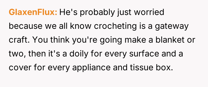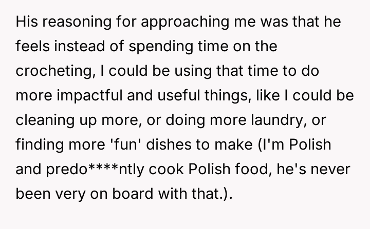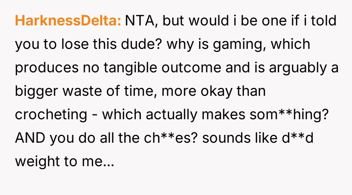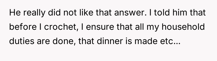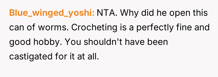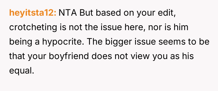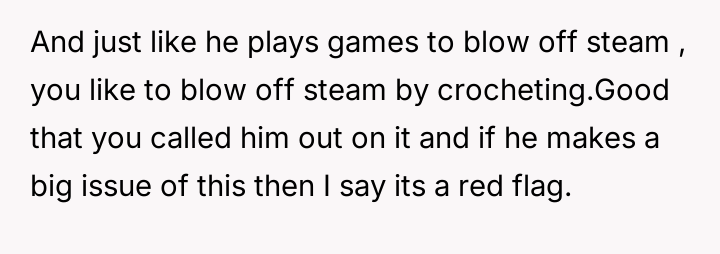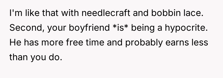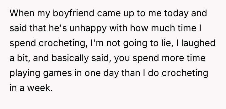 AITA for calling my boyfriend a hypocrite when he told me to stop spending so much time on my crotcheting?