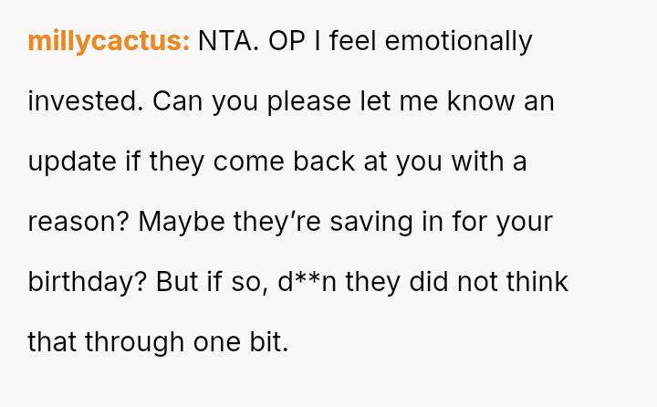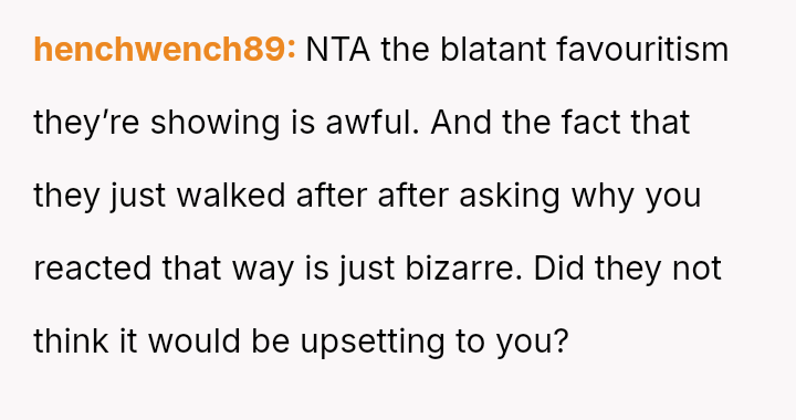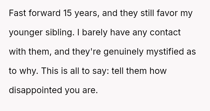 Should the OP accept the situation as a parental prerogative, or is this inequity severe enough to damage the family relationship?