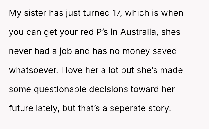 Meanwhile, the sister, newly eligible for her provisional license but without the same sense of responsibility or financial independence, stood at a crossroads shaped by different choices and parental expectations.