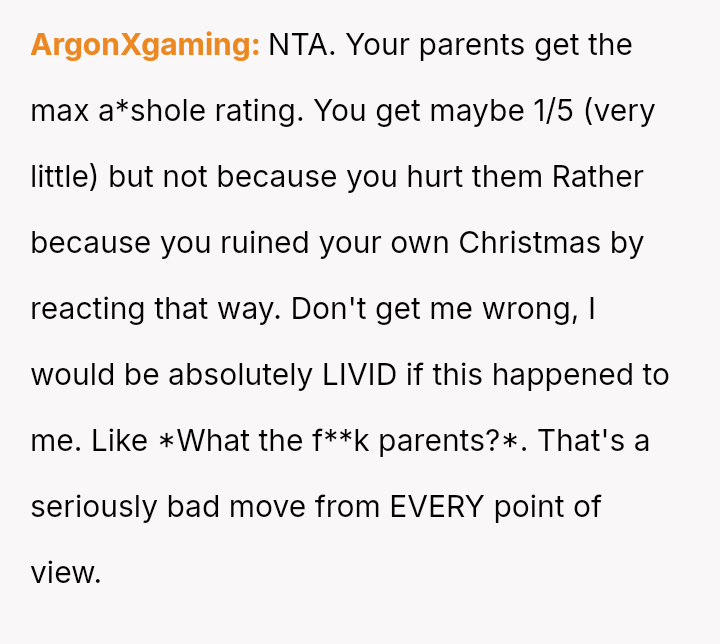 The central conflict lies between the OP's expectation of fairness and adherence to an es**blished agreement, versus the parents' apparent decision to prioritize the younger, less prepared sibling with a much more expensive gift.