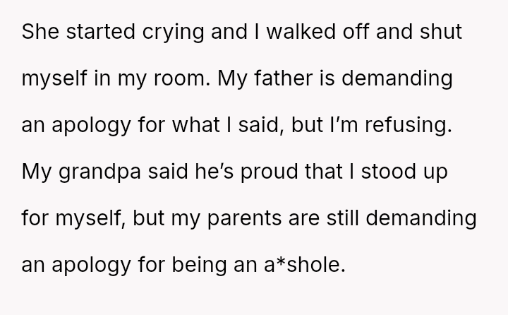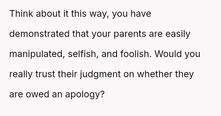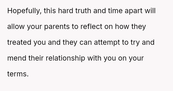 Was the OP justified in sharply confronting their parents about their long-term unequal treatment and refusing to apologize for prioritizing their own life, or did the harshness of the delivery cross an ethical line?